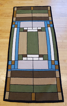 Judy Ross designed and hooked this rug with a Frank Lloyd Wright influence
